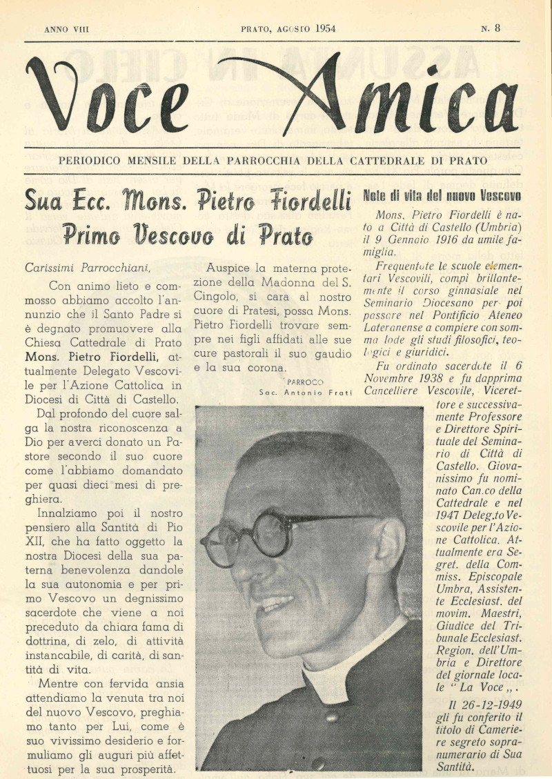 Nel febbraio 1954, grazie all’interessamento del senatore Bisori, allora sottosegretario all’Interno con delega agli affari del culto, e alla collaborazione del vicario vescovile Fantaccini e di altri personaggi dell’ambiente cattolico locale, venne ufficializzata la separazione della diocesi di Prato da quella di Pistoia; pochi mesi dopo, il 17 ottobre, fece il suo ingresso in città il nuovo vescovo, Pietro Fiordelli (1916-2004).